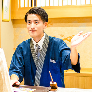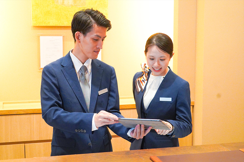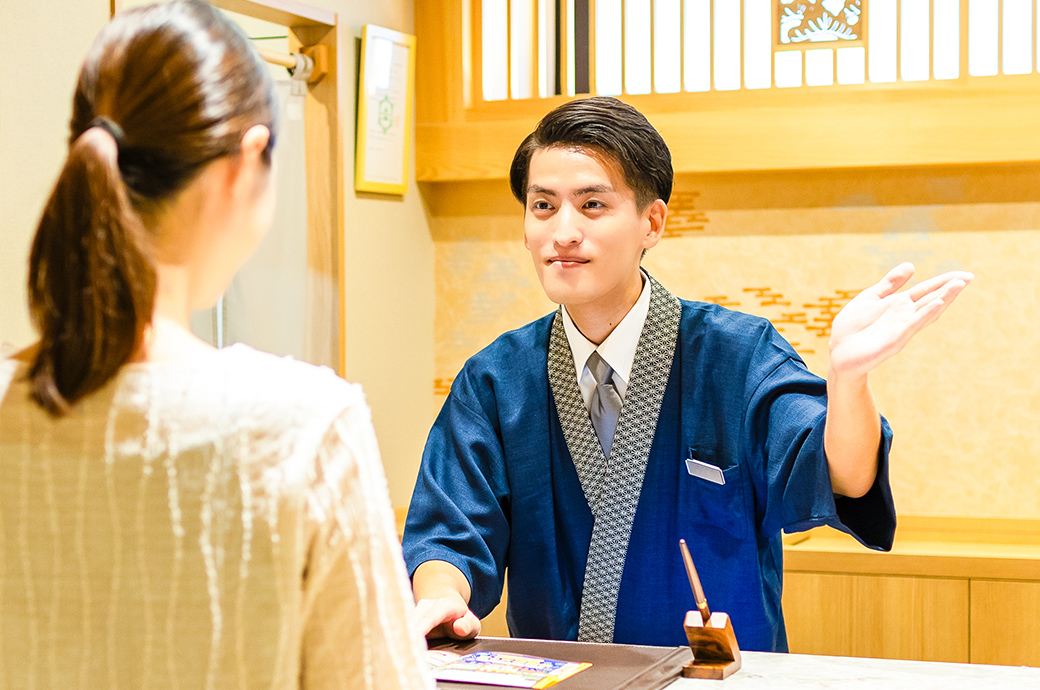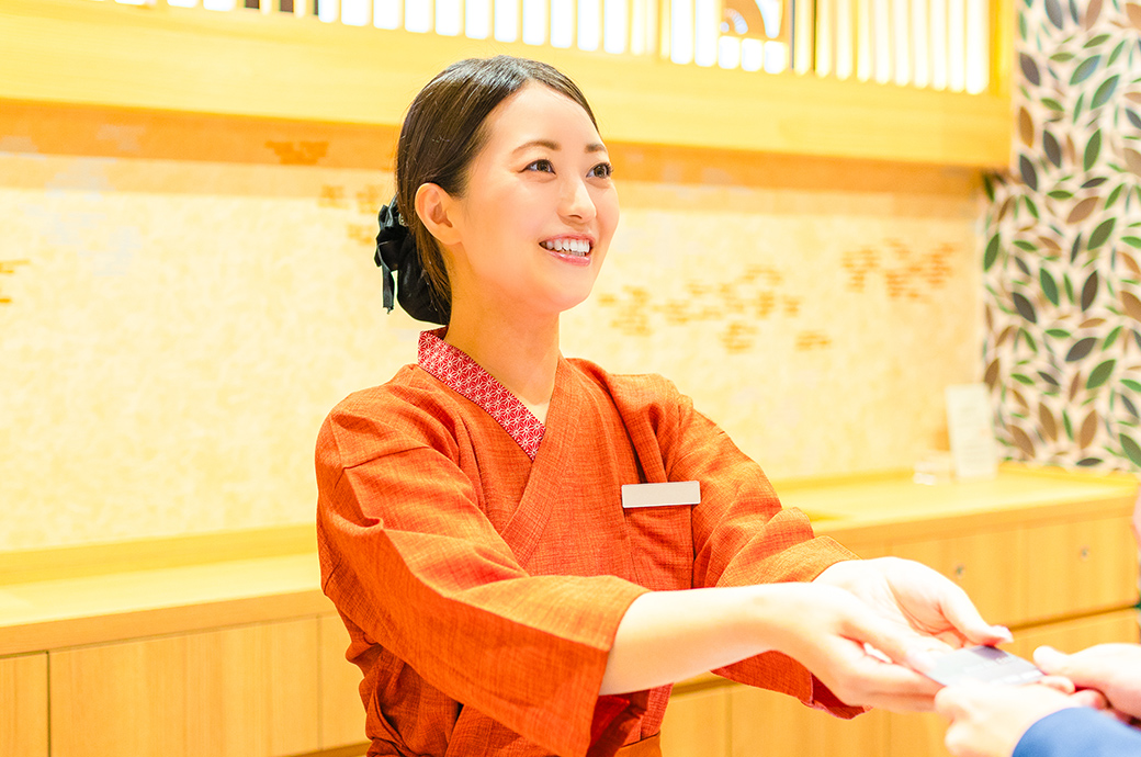 チェックイン・チェックアウトや館内案内、精算対応をはじめ、売店販売、館内巡回、清掃、ナイト業務など幅広く担当します。