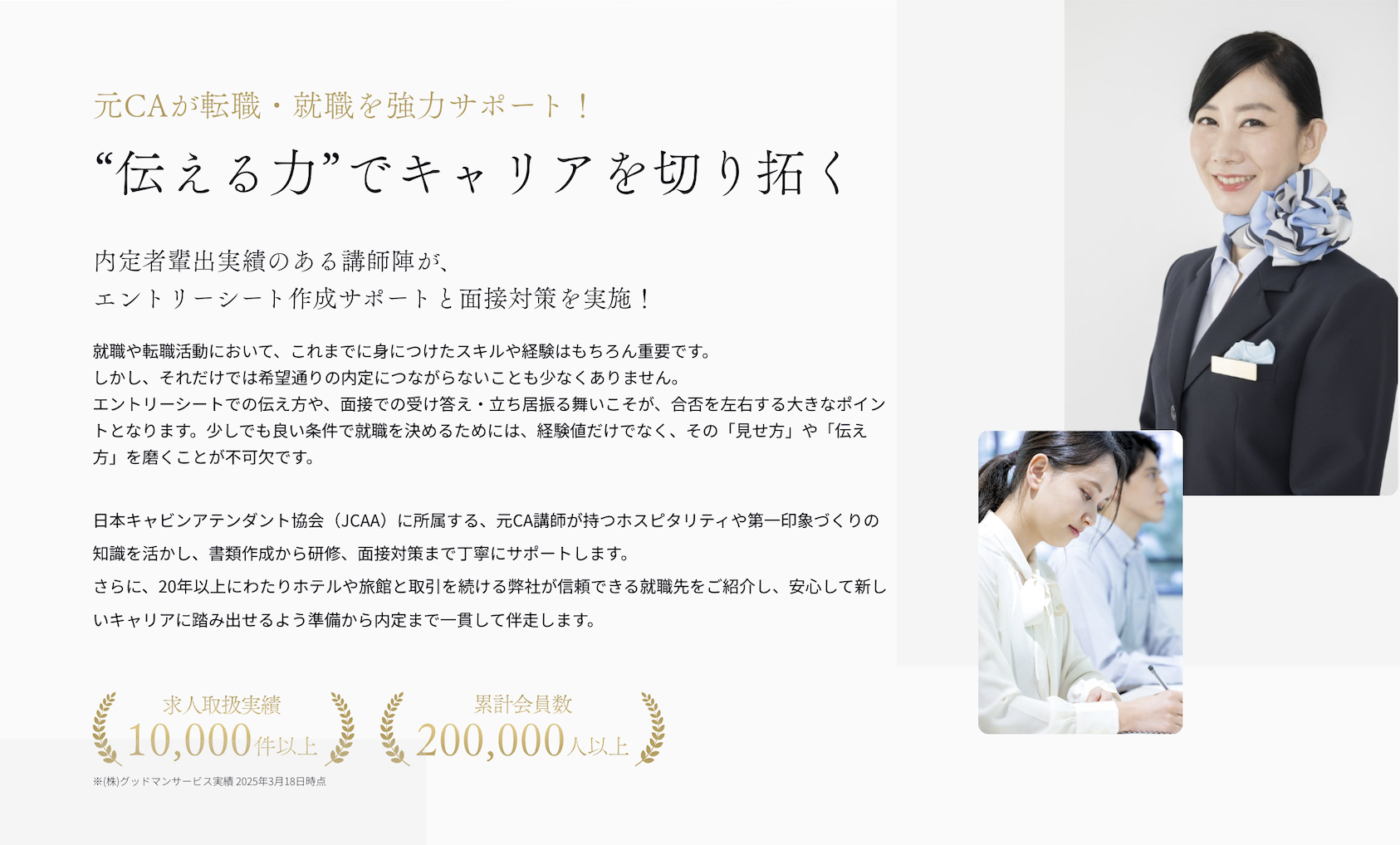 元CAである講師陣がエントリーシート作成サポート、面接対策で転職を徹底サポート